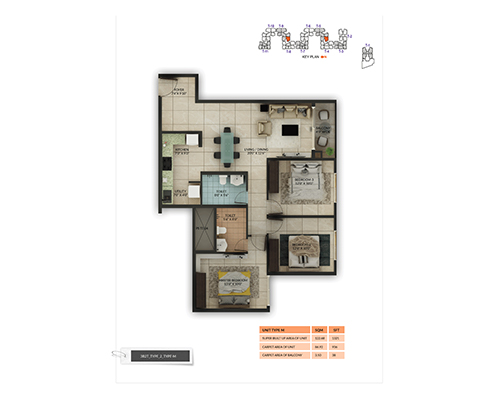 3 BHK + 2T Type M