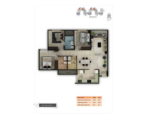 3 BHK + 3T Type M
