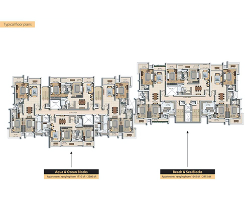 Aqua & Ocean Blocks – 1710 sq.ft. to 2360 sq.ft. Beach & Sea Blocks – 1645 sq.ft. to 2415 sq.ft.